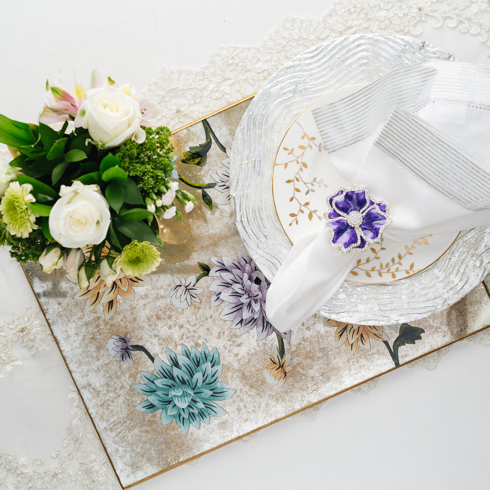Aqua Blue Spring Flower Napkin Ring (set of 4)