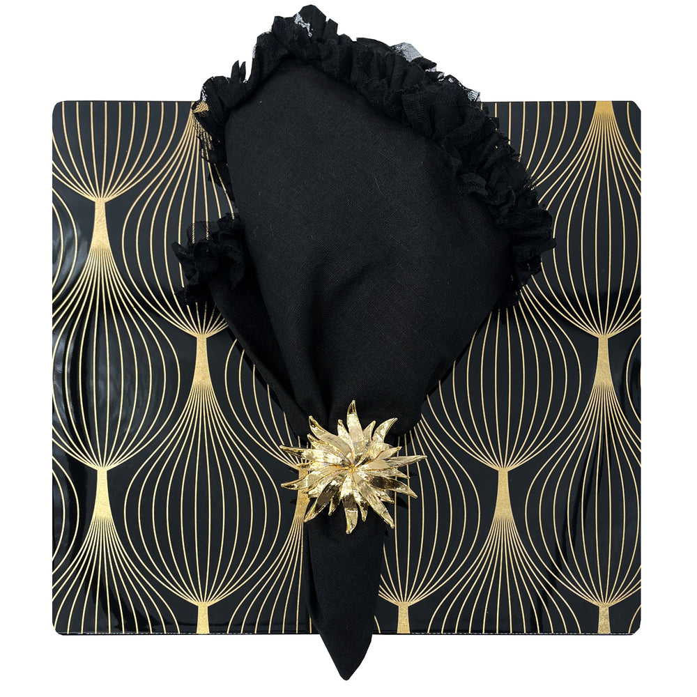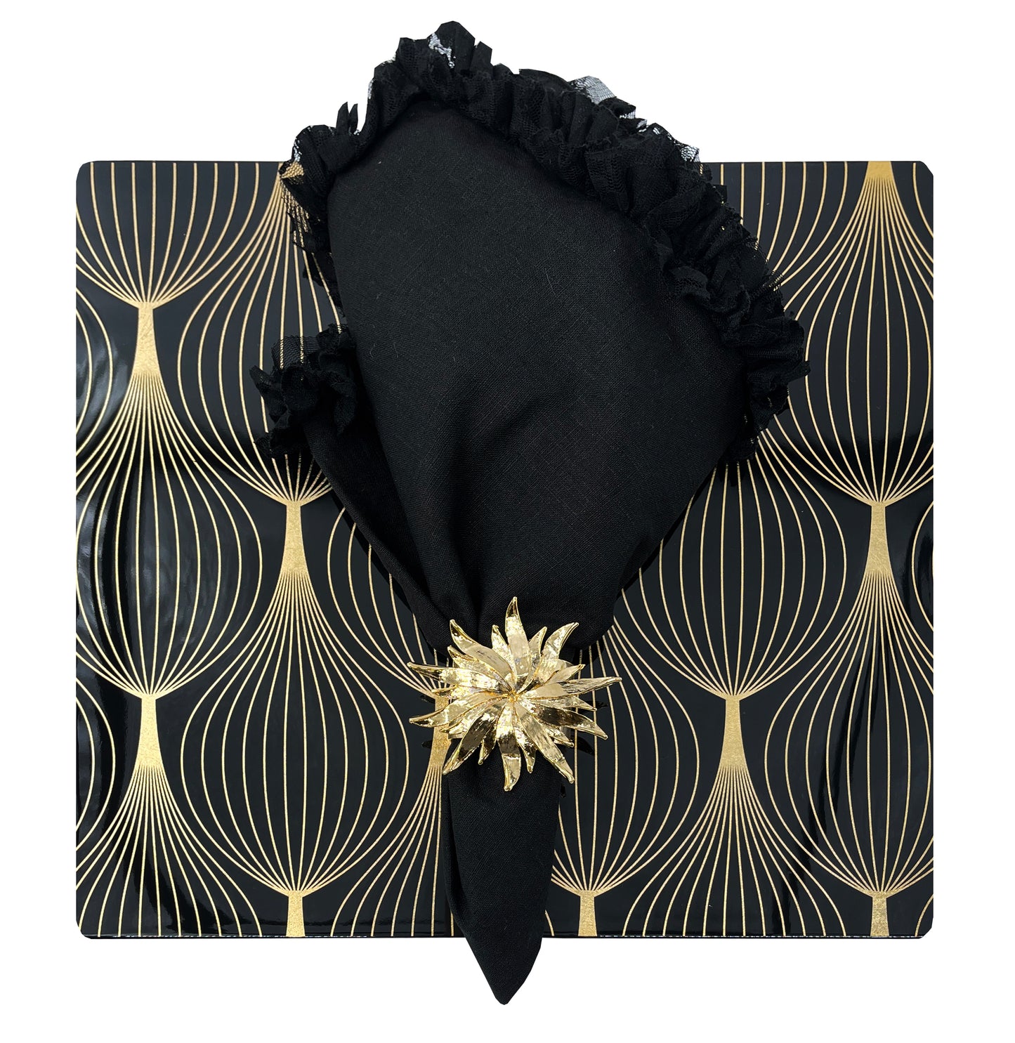 Black & Gold Spring Flower Napkin Ring (set of 4)