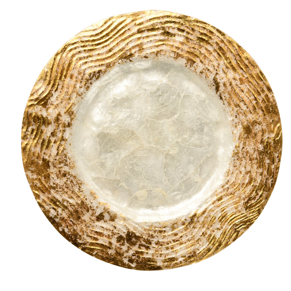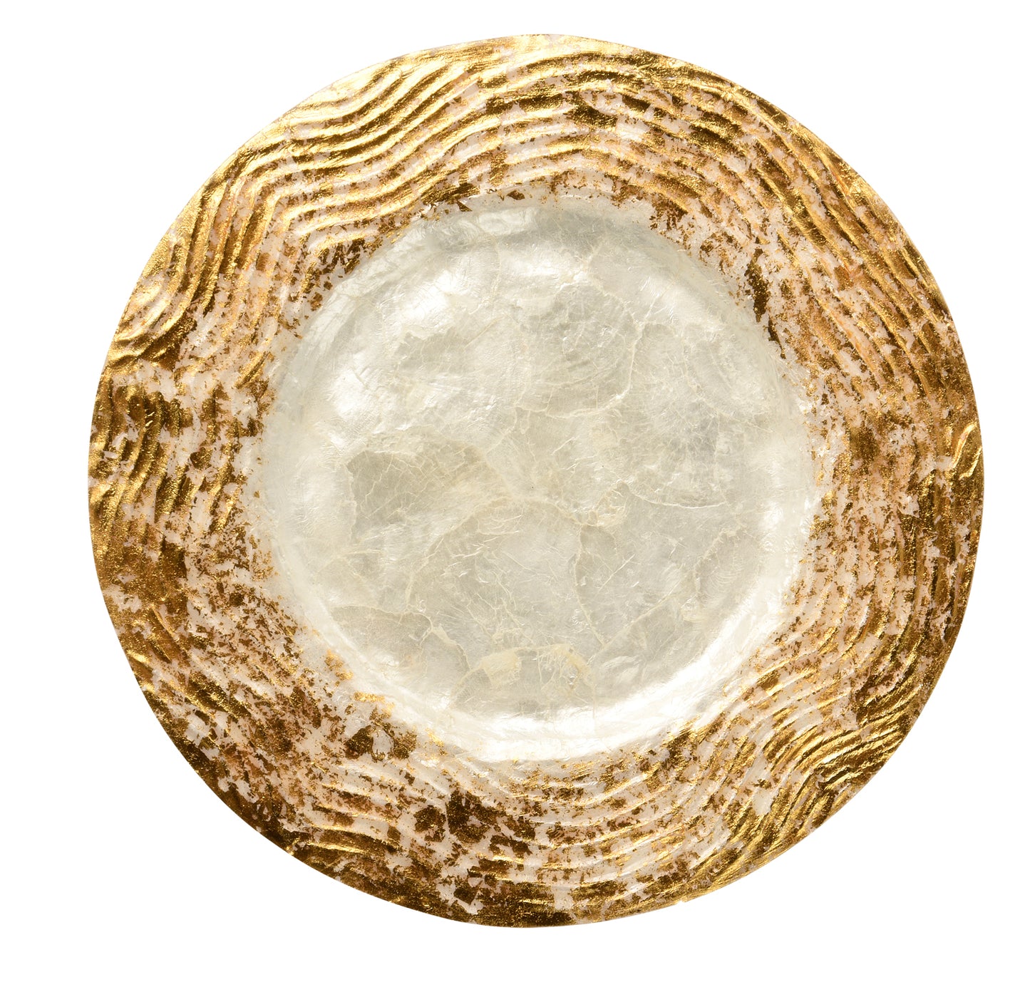13" Charger Plate in 100% shell mother of pearl with Gold trimming