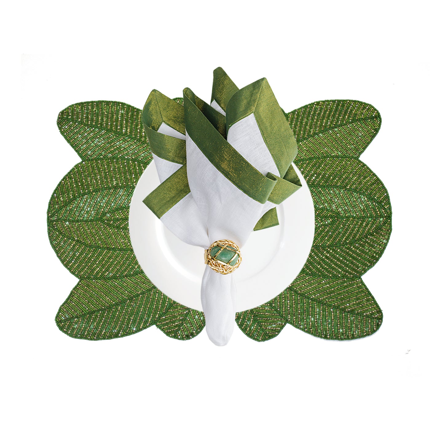 Green Classic Hand Beaded Round Placemat