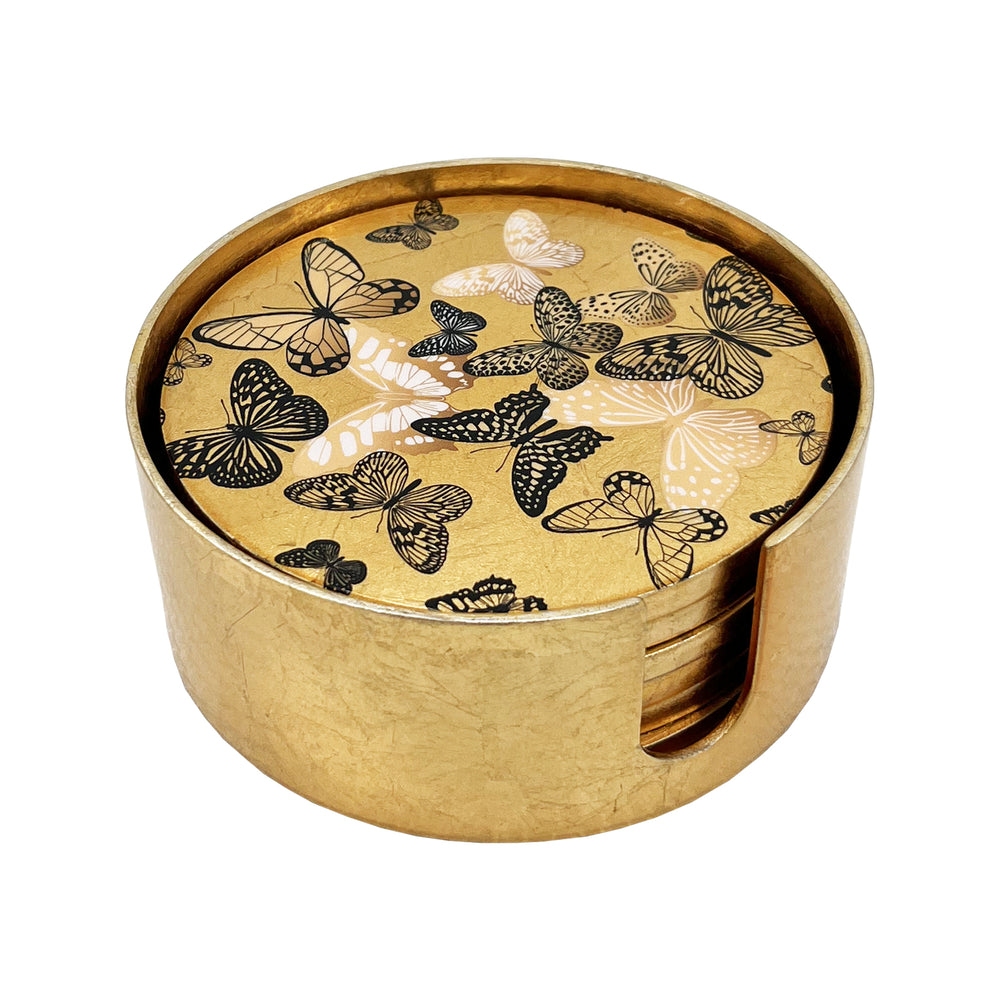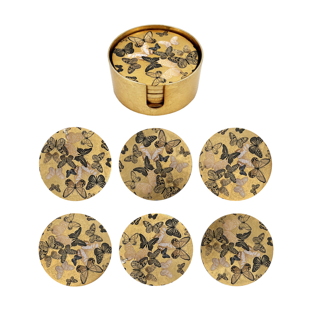Add Butterflies Stone Lacquer Coasters with Holder Gold (Set of 6) to the cart
