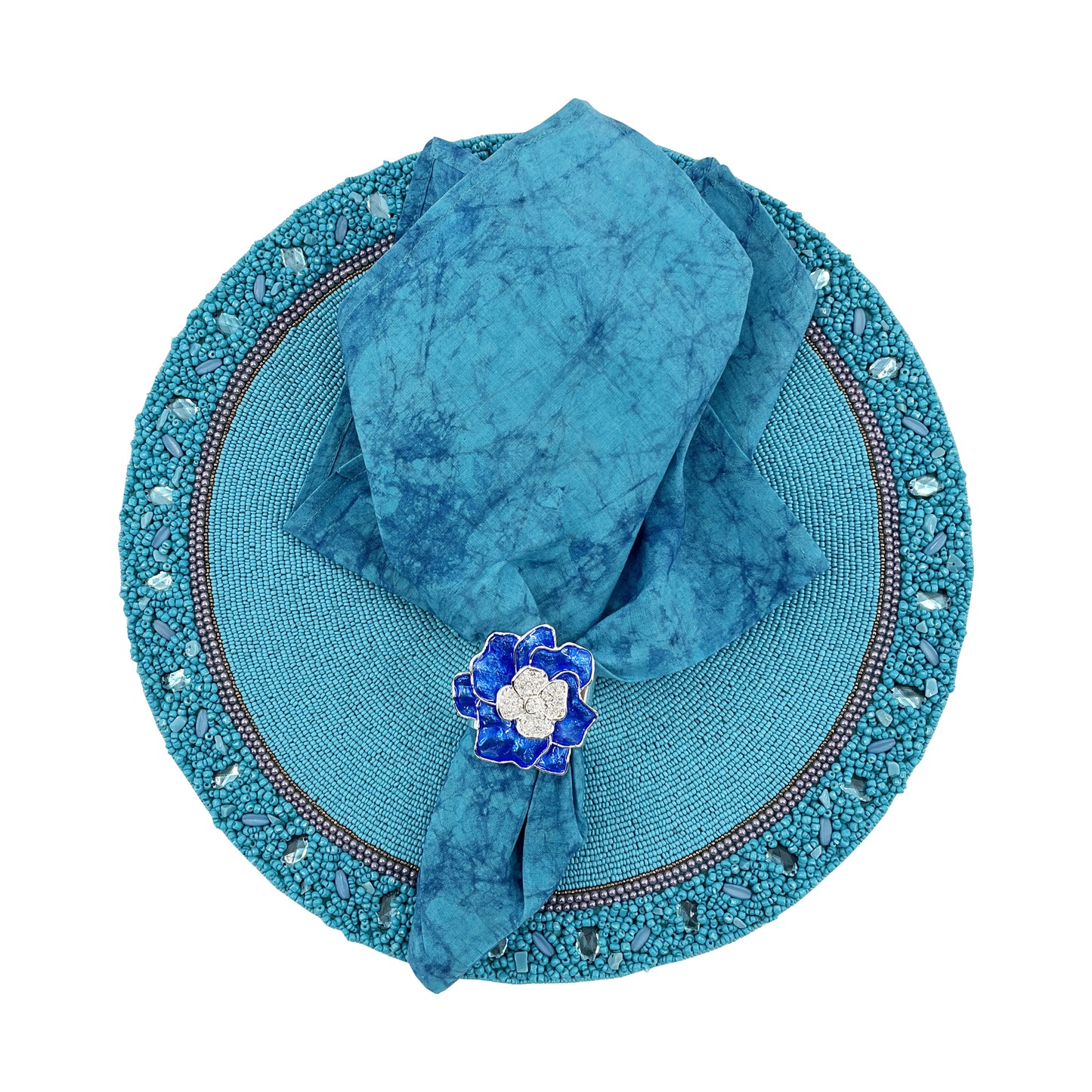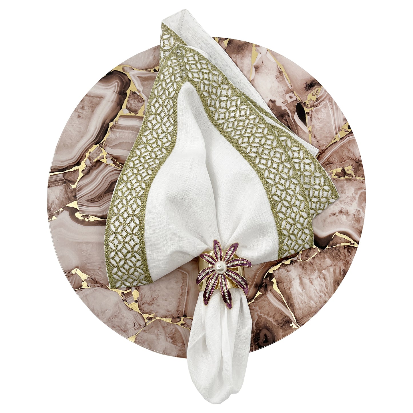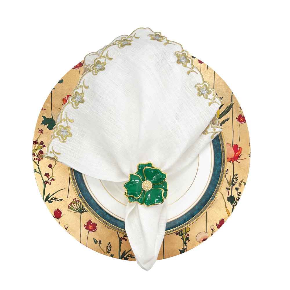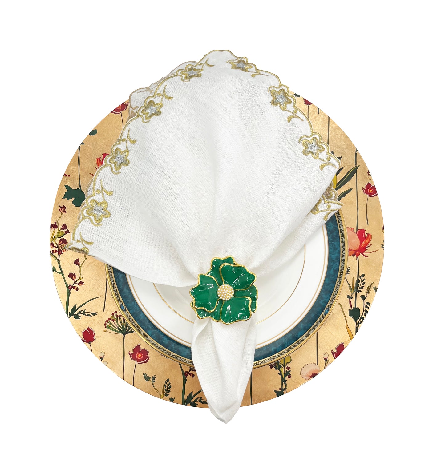 Ivory Napkin with Gold and Silver Flower Embroidery