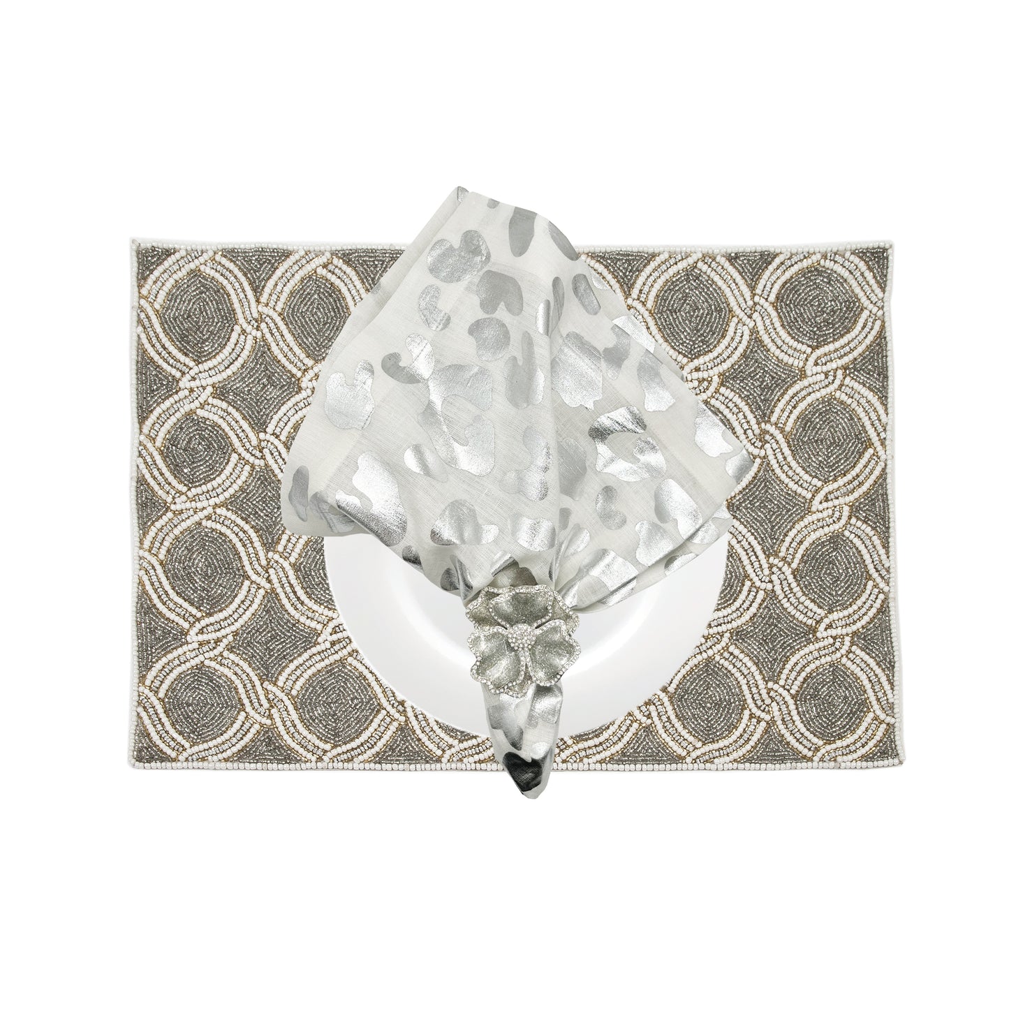 Add Earth Classic Border Square Napkin Silver Border Silver Napkin to the cart