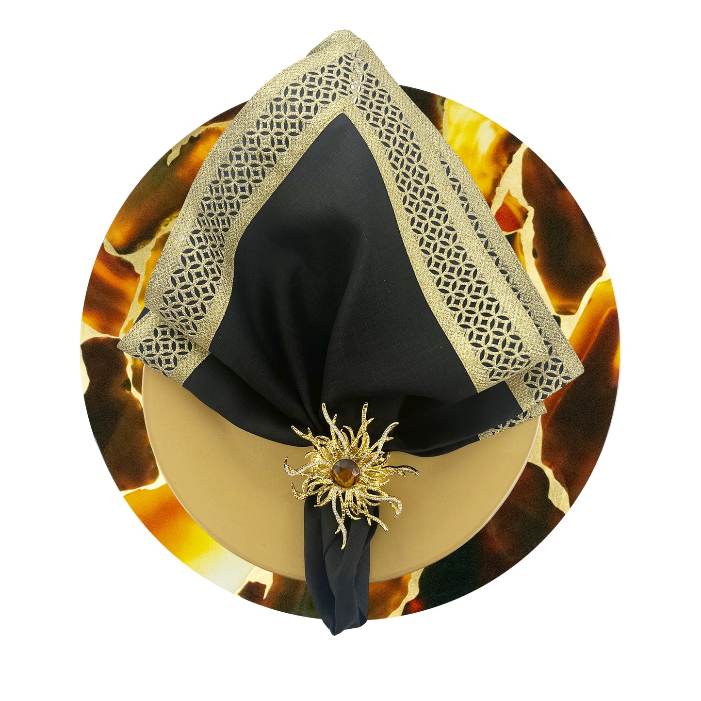 Add Black Napkin with Gold and Silver Flower Embroidery to the cart