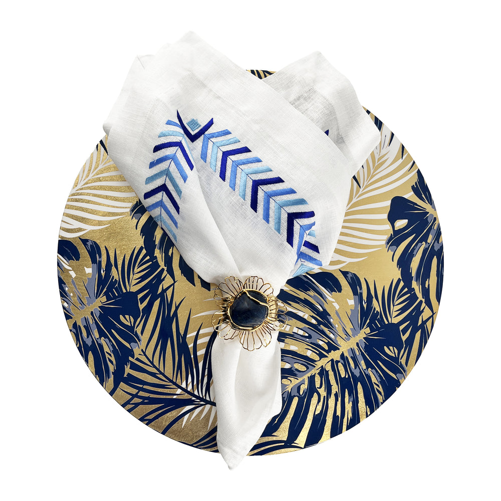 Add Blue Chain Hand Embroidered White Linen Napkin to the cart