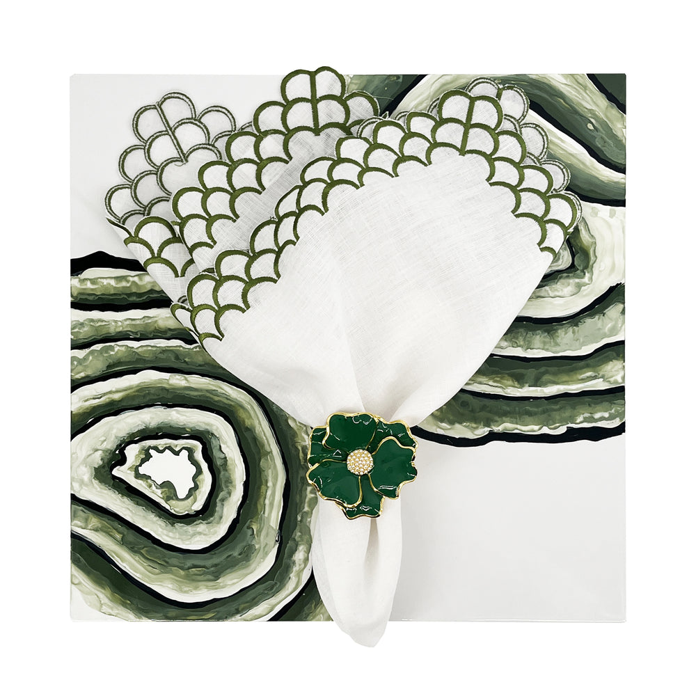 Add Green Hand Embroidered Peacock Linen Napkin to the cart