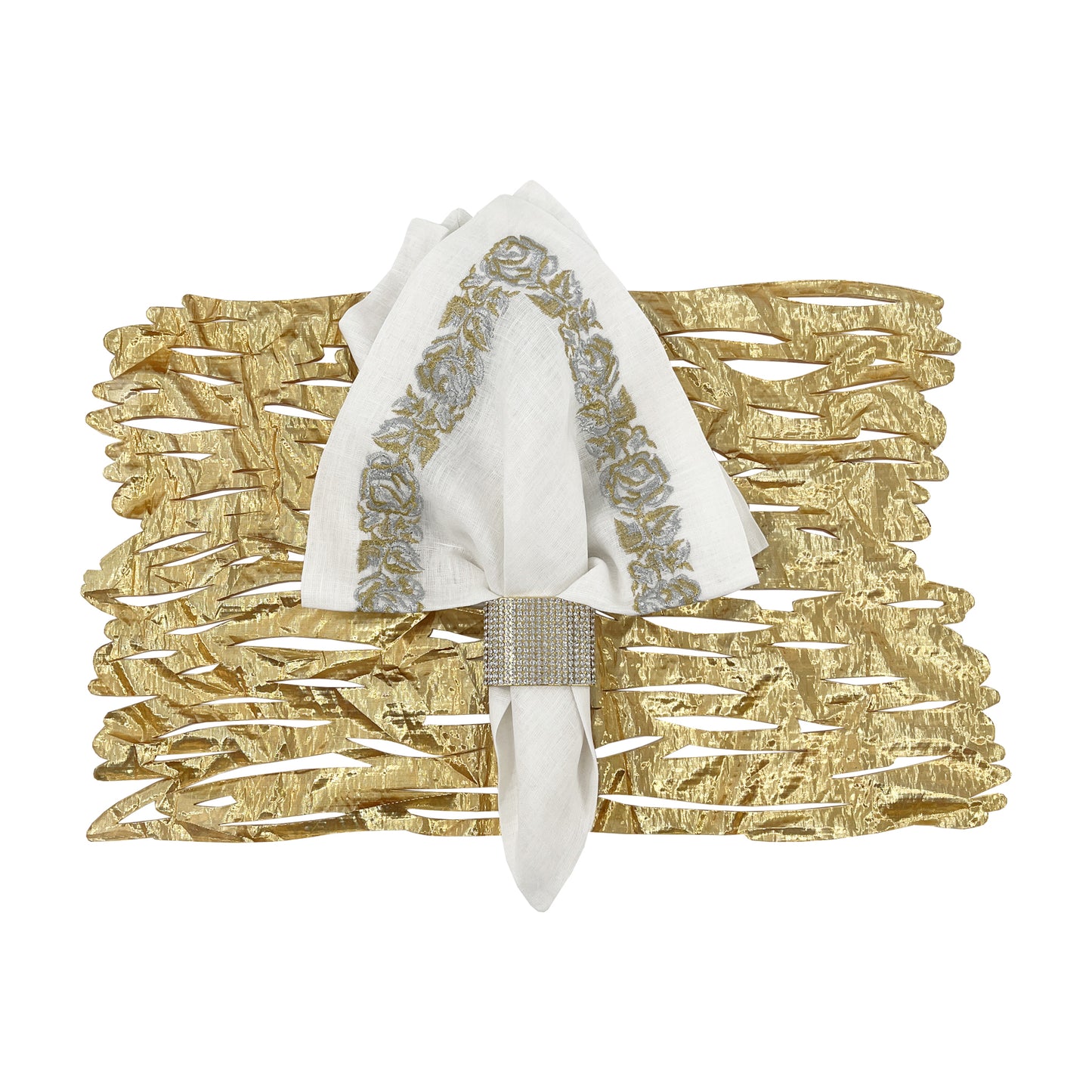 Gold Embroidered Elegant Chain Linen with Faggoting Linen Napkin