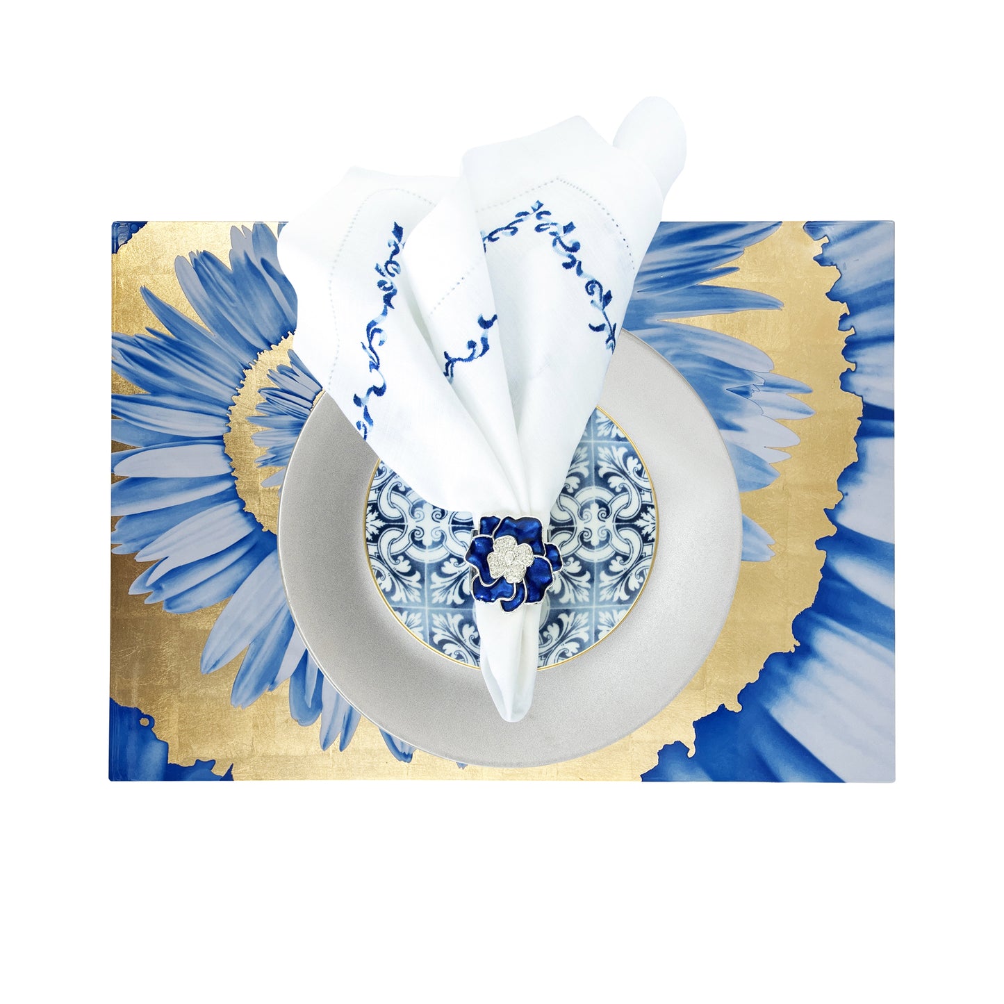 Blue Floral Spiral Gold Laquer Rectangular Placemat