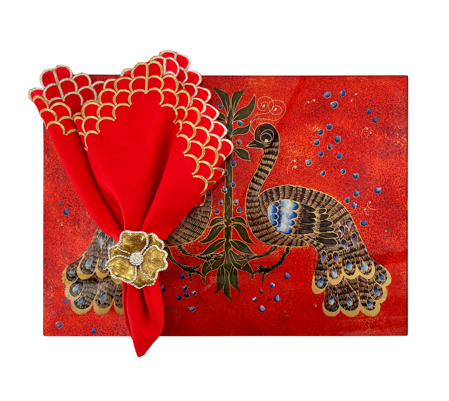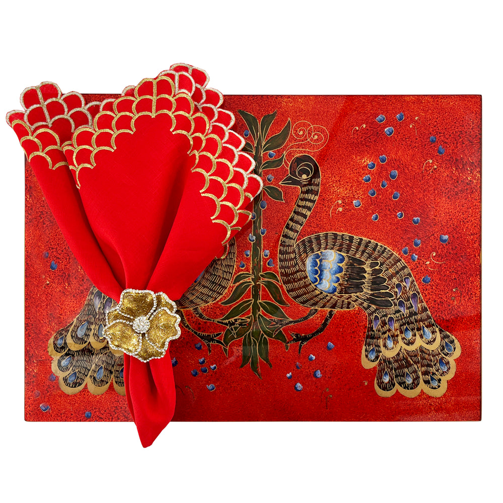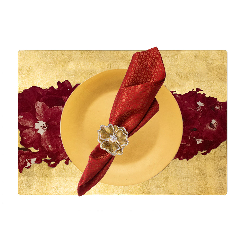 Gold with Red Floral Center Handpainted Lacquer Rectangular Placemat