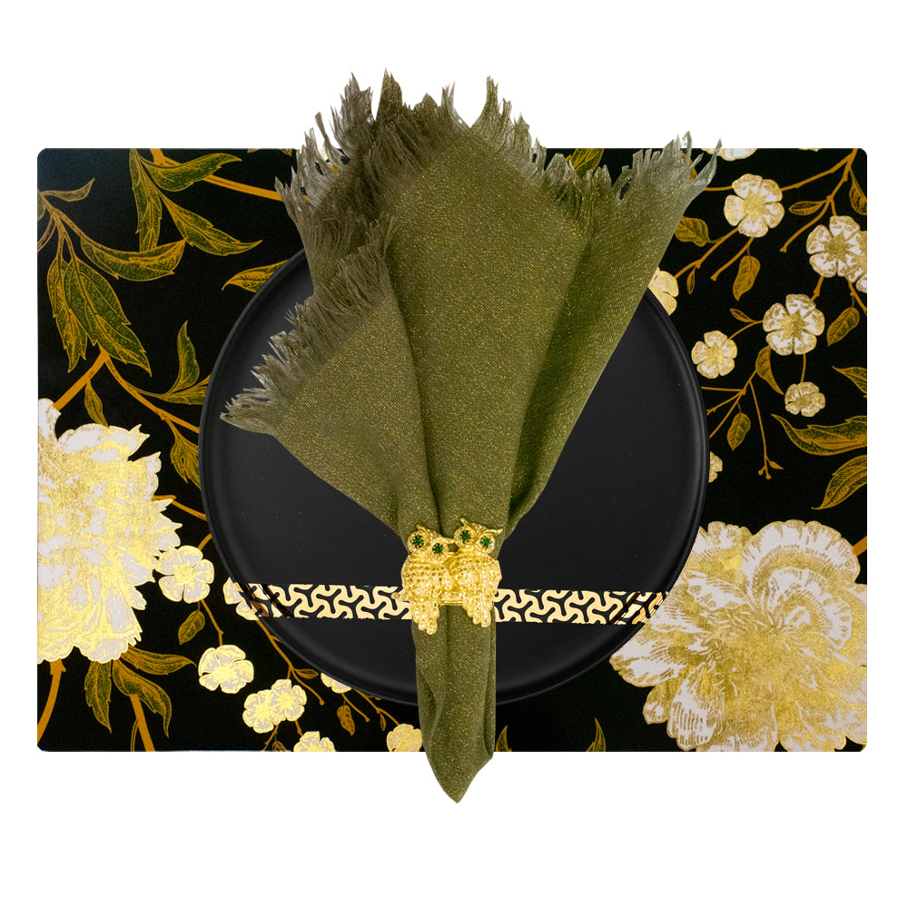 Gold Vegan Leather Floral Embroidered Placemat