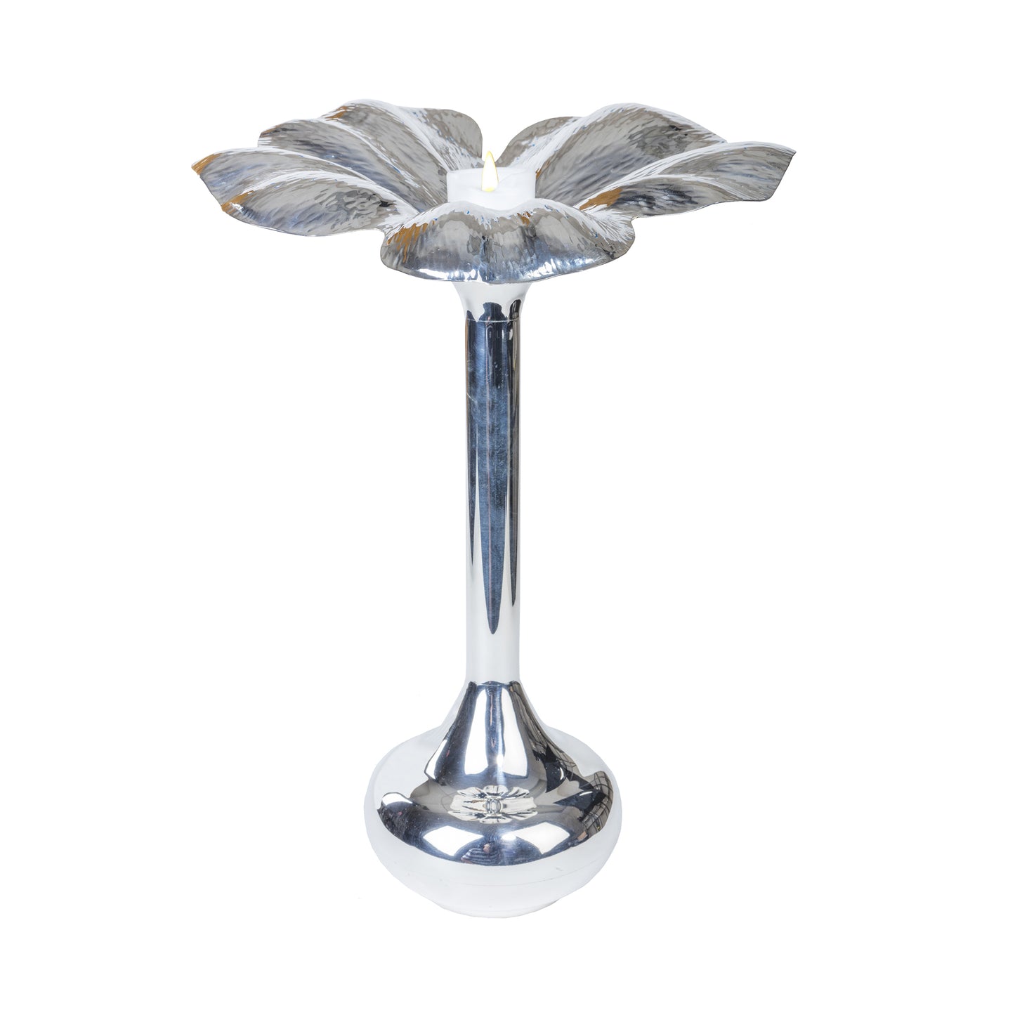 Regular price $192.00Medium and Small Silver Flower Vases and Candleholders. This Flower piece can serve as a vase, or a candle holder. Made of silver plated anti-tarnish metal, this piece is a must for any fashionista.